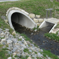 Durchlass in offener Bauweise als Unterführungsbauwerk der Glems unter einem geplanten Kreisverkehrsplatz in Stuttgart-Büsnau (Mahdental).